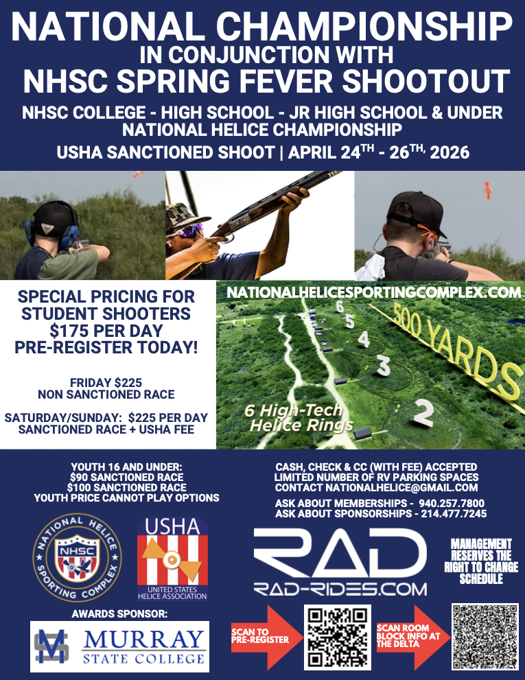 April 24th - 26th, 2026 | Spring Fever Shootout | NHSC College - High School - JR High School & Under National Helice Championship